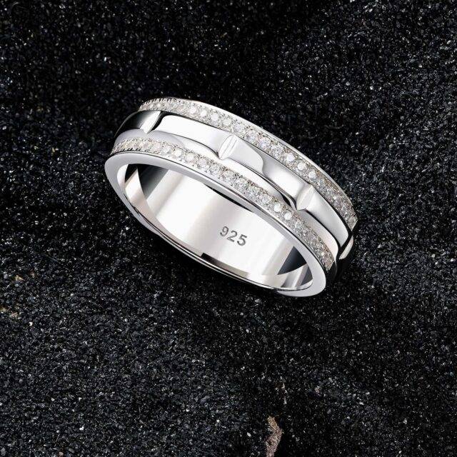 At the heart of this exquisite piece lies the brilliance of AAAAA cubic zirconia. Each gem, precisely cut into a perfect round shape, measures 1.0*1.0 mm. The meticulous prong setting of 50 cubic zircons around the band ensures maximum sparkle from every angle. Crafted from solid 925 sterling silver and coated with rhodium plating, the ring promises not only beauty but also durability and a tarnish-resistant finish.
