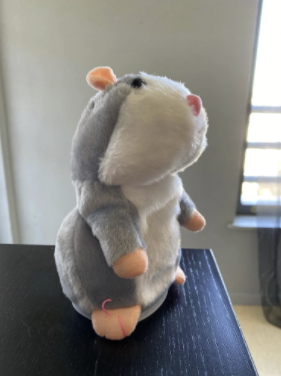 This hamster is a very funny toy for children. I like how it repeats whatever you say. It is pretty small and very easy to carry around. It repeats whatever you say or whatever sound sound you make very clearly just like what you said or what sound you just made. My daughter loves to play with it, she brings it almost everywhere and anywhere she goes.