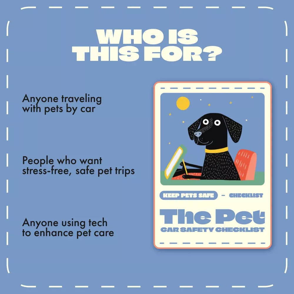 Unlike basic pet travel tips you’ll find online, The Pet Car Safety Checklist combines expert safety advice with modern technology insights—like AI monitoring tools—to make sure your pets stay healthy, happy, and secure no matter how far you go. It’s beautifully designed, practical, and easy to use again and again.
