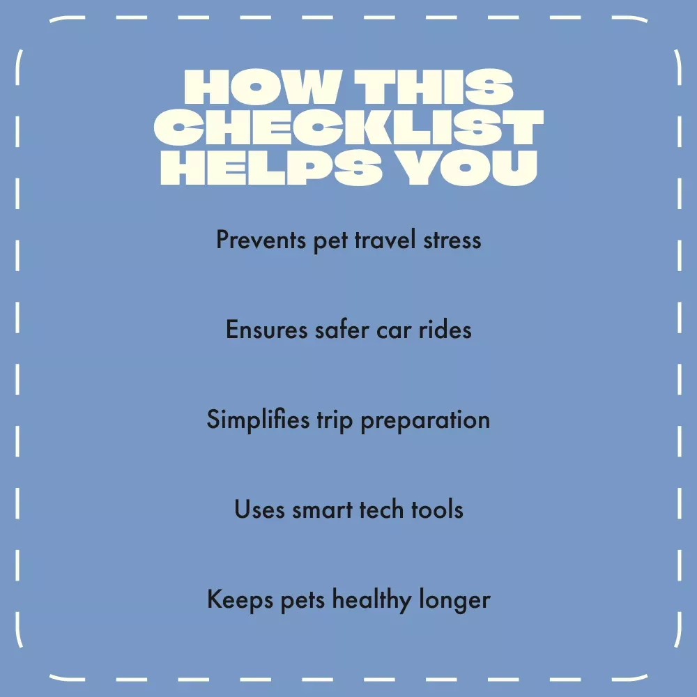 This checklist is perfect for dog and cat owners, pet sitters, or anyone who loves bringing their animals along for car trips. Whether you’re a new pet parent or an experienced traveler, this guide helps you create a safe, cozy, and well-planned environment for your four-legged companion.
