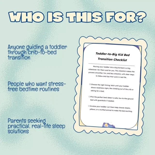 Make this milestone a positive memory instead of a stressful challenge. The Toddler-to-Big Kid Bed Transition Checklist gives you everything you need to guide your child with patience, consistency, and fun.
