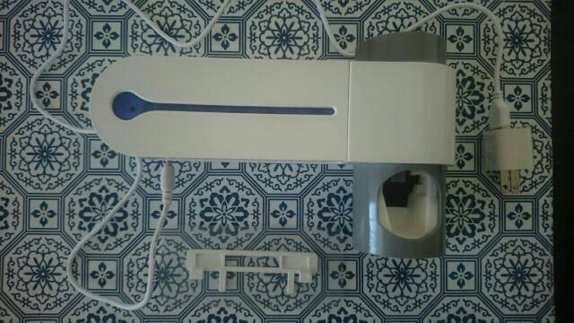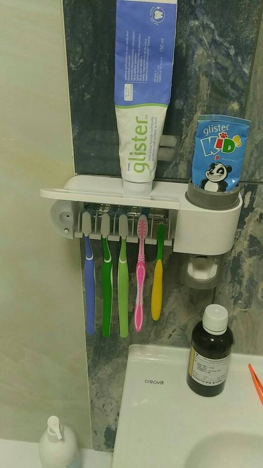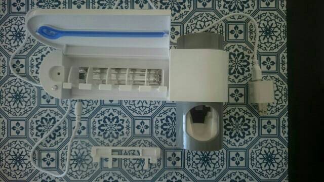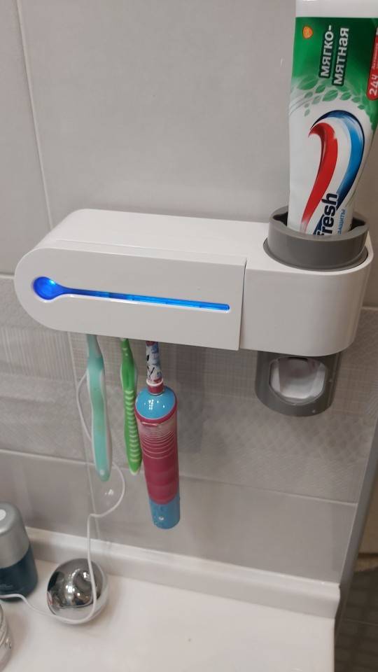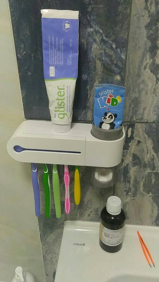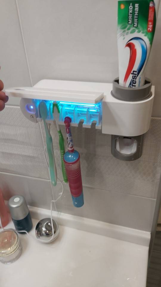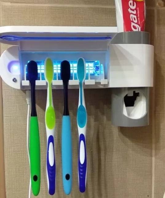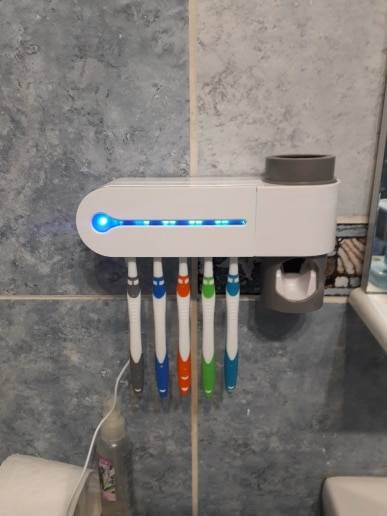 Very cool antibacterial holder. Beautiful design! Holds everyones toothbrush and sanitizes them effortlessly. Great product to save counter space & have a clean toothbrush. Very great product!