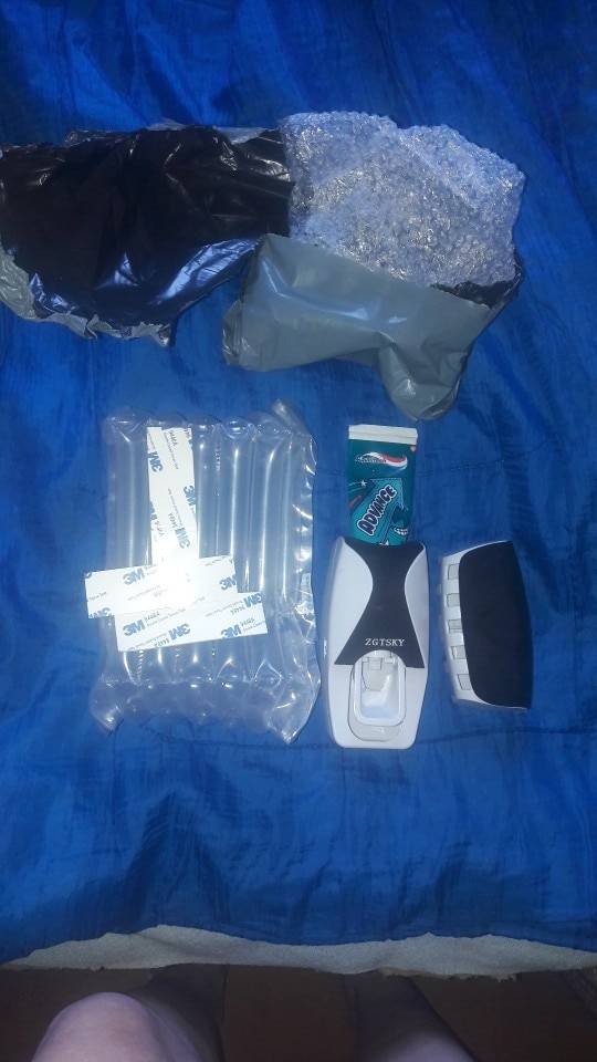 The goods received, packed very well, this product must have a smooth surface to adhere to; unfortunately my bathroom has no such place except the mirror. it can also be screwed into the wall but I am not comfortable with that. I am using the product by laying if flat on the counter top. It works well, but I kinda disappointed with the mounting options.