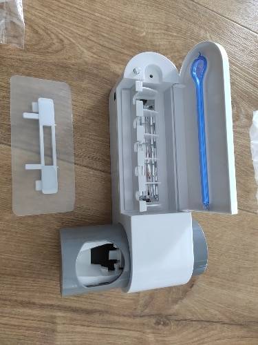 Remove the adhesive mounting pad from the toothbrush sanitizer.