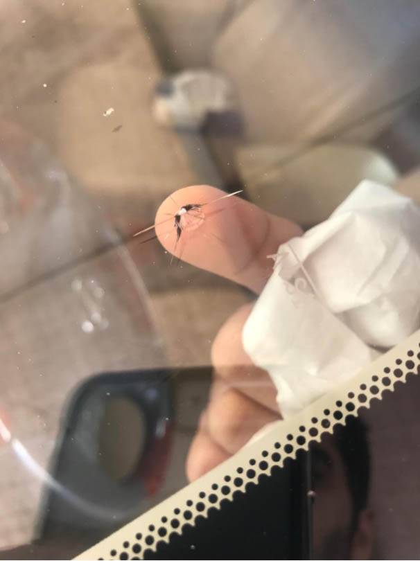 1. Carefully remove glass debris (if there is any) from the crack site.